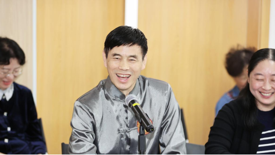在“回顾书画社历史,畅谈人文情怀”专题发言环节,大家积极发言,分享自身经历和感悟。第一任枫叶书画社负责人常敬宇老师旁征博引,表达了他对于中华书法艺术的看法。他指出,中国书法是汉字的艺术,具有极高的审美价值,强调书法艺术有益于养生健康,书法可以帮助人们修生养性,陶冶情操。在此基础上,他也表达了终身致力于教育和研究传播中国书法的坚定决心。
