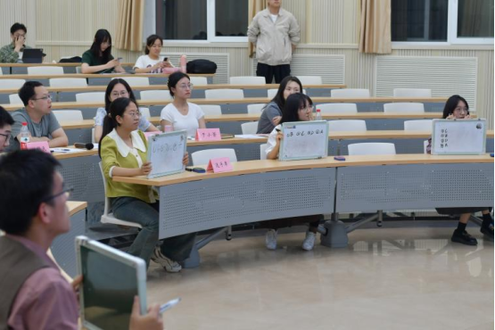 选手答题过后,评委老师们针对选手表现进行了权威且专业的点评。马方方老师就本次题目的概况与难易程度和各位不同专业选手的表现进行了点评;贾烈英老师则对活动本身的内容和策划进行了总结,对学院这一大型活动的未来寄予厚望;项皓老师指出本次竞赛起到了开阔视野的重大作用,鼓励大家在专业领域继续深耕;于小萱老师、毛绿萱老师也分别作了总结发言。