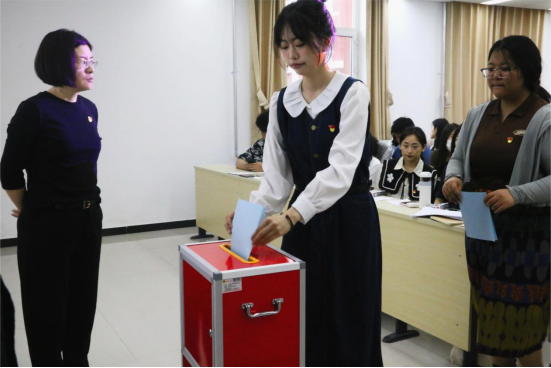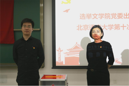 随后,在总监票人林建萍同志的主持下,所有参会党员填写选票,并依次上台投出自己庄严的一票。最终,大会选举产生了8名出席中国共产党北京语言大学第十次代表大会的代表(按姓氏笔画为序):王涵之、闫冬、李瑞卿、杨毓雯、张冠夫、姜西良、徐宝锋、魏兆惠。