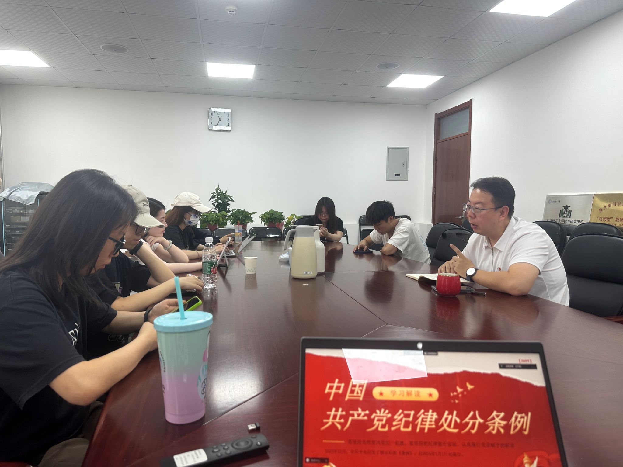 为扎实开展党纪学习教育,将学校党委关于党纪学习教育相关要求和部署落细落实,充分发挥二级党校作用,激发党员学习热情,新闻传播学院依托“传薪”党校,举办党纪学习教育专题班。5月15日,专题班举行第一次课程,全体研究生党员围绕《中国共产党纪律处分条例》(以下简称《条例》)进行学习、交流。研究生党支部书记王子芙主持学习,学院党总支书记杨天乔参加学习。