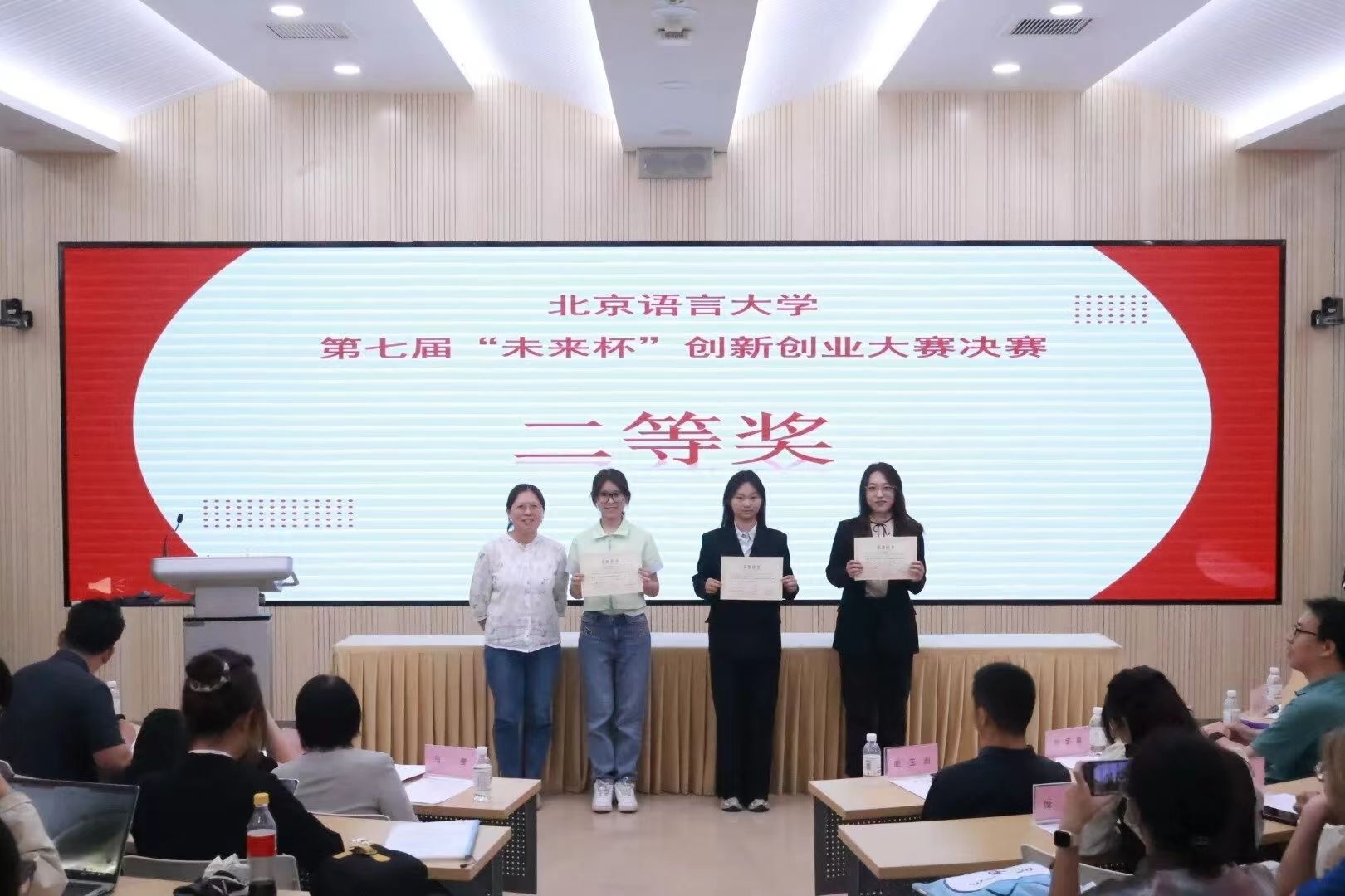 2024年5月10日19点,北京语言大学第四届“之语杯”青年学术节开幕式暨第七届“未来杯”创新创业大赛暨“青创北京”2024年“挑战杯”中国大学生创业计划竞赛校选赛决赛,在教二101教室顺利举行。本届学术节致力于丰富我校学术文化活动,营造奋发向上的学术风气,并彰显北语青年锐意进取的精神风貌。经过层层选拔,共有15支队伍脱颖而出,入围本次“未来杯”答辩。