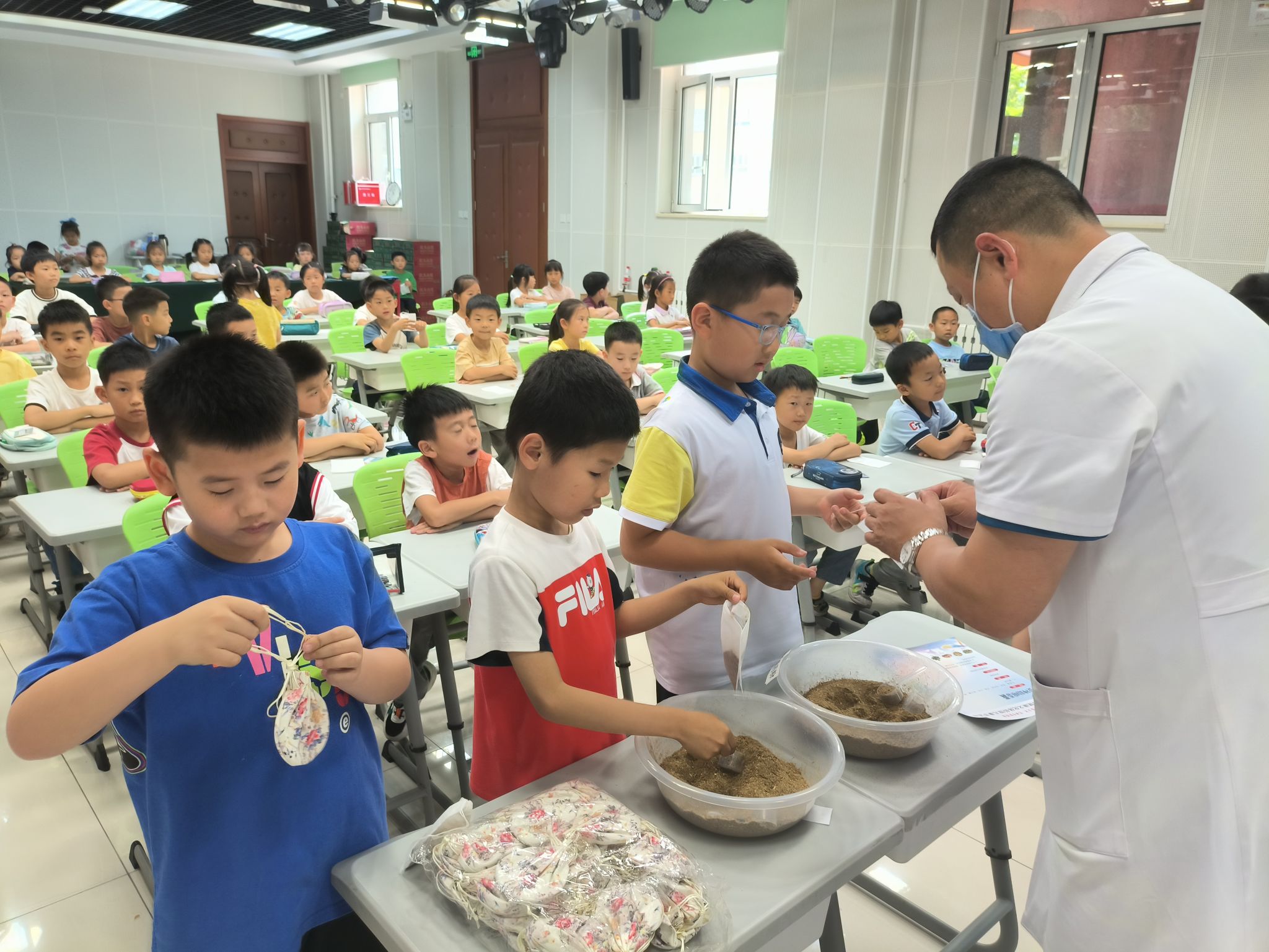 在制作中药香囊环节,每位同学亲手制作了具有不同功效的香囊,有的同学制作了驱蚊芳香香囊,有的同学制作了醒脑开窍香囊,还有的同学为自己的奶奶和妈妈制作了安眠健脑香囊。孩子们都迫不及待地想要把香囊赠与自己的朋友及家人。此环节,锻炼了学生动手能力,增加了对中医药的认识与理解,并以独特的方式表达了对自己家人的爱与感恩。
