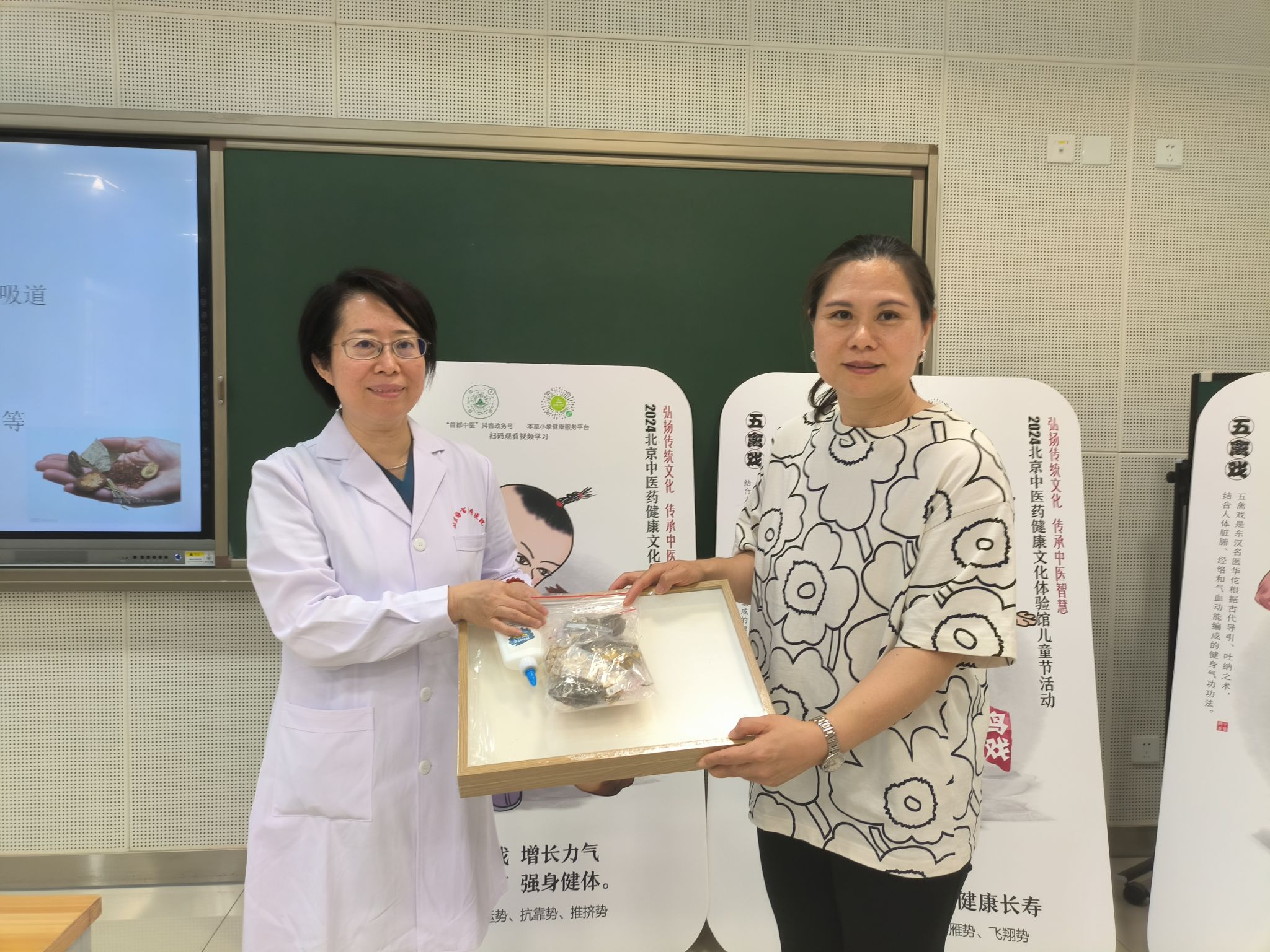 活动最后,北京语言大学医院王院长向一年级行政组长张苒老师赠送了由北京市中医药管理局特地为孩子们准备的本草小象中药学习教具,此次活动在欢乐的气氛中成功落下了帷幕。