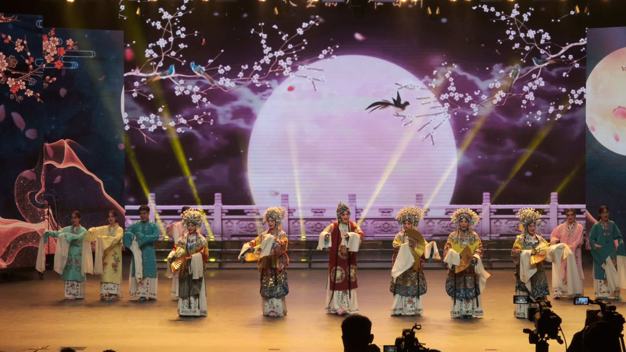 当角色上台一亮相,那一身精致的扮相,一副传统的唱腔,观众们的注意力全部集中于台上这瑰丽的国粹表演。戏曲队的《梅韵新声》选唱了三段经典曲目,彼此扣合,遥相呼应,词曲典雅,感人肺腑。曲罢,众人依旧如痴如醉,震撼不已。