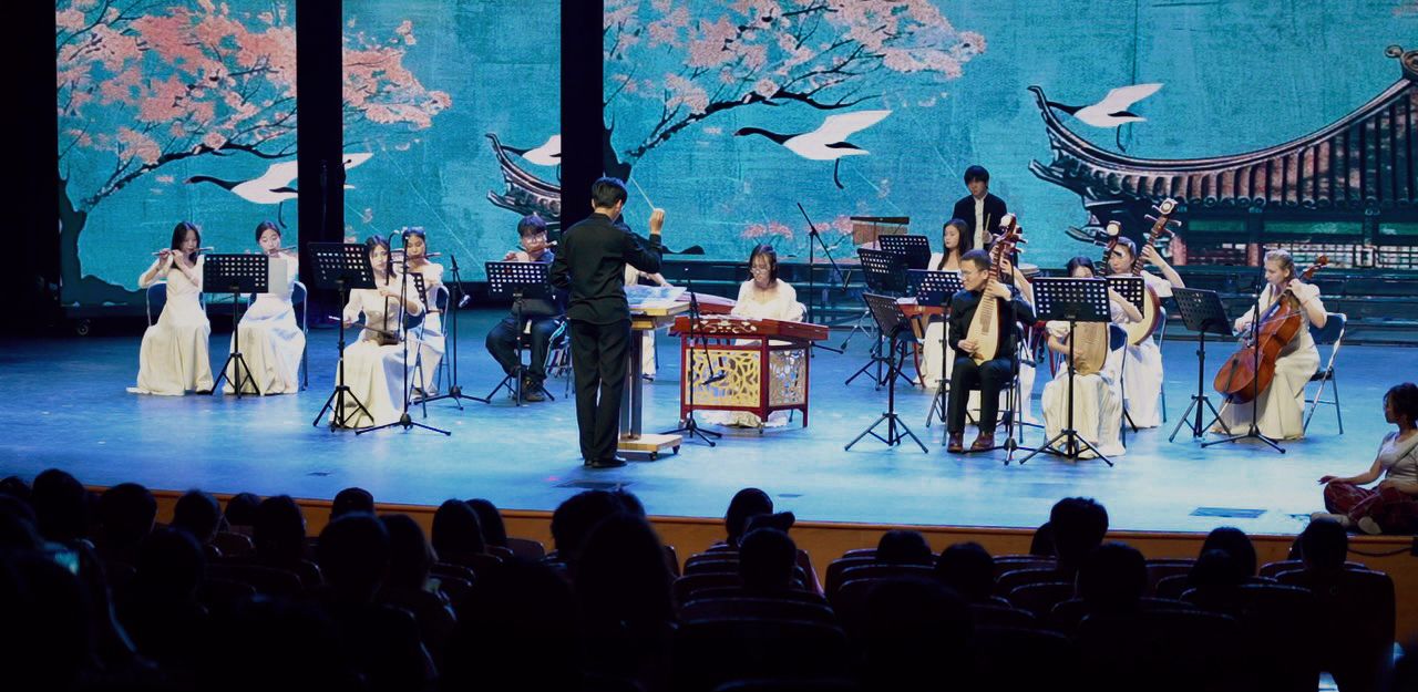 这里有合唱队的《中国古诗合唱五首(节选)》以歌声吟古诗,在经典传唱中重现古人当年的真知灼见,文思风采。那些耳熟能详的诗词与跳跃的音符共舞,谱出一段段回味无穷的旋律,扣人心弦。