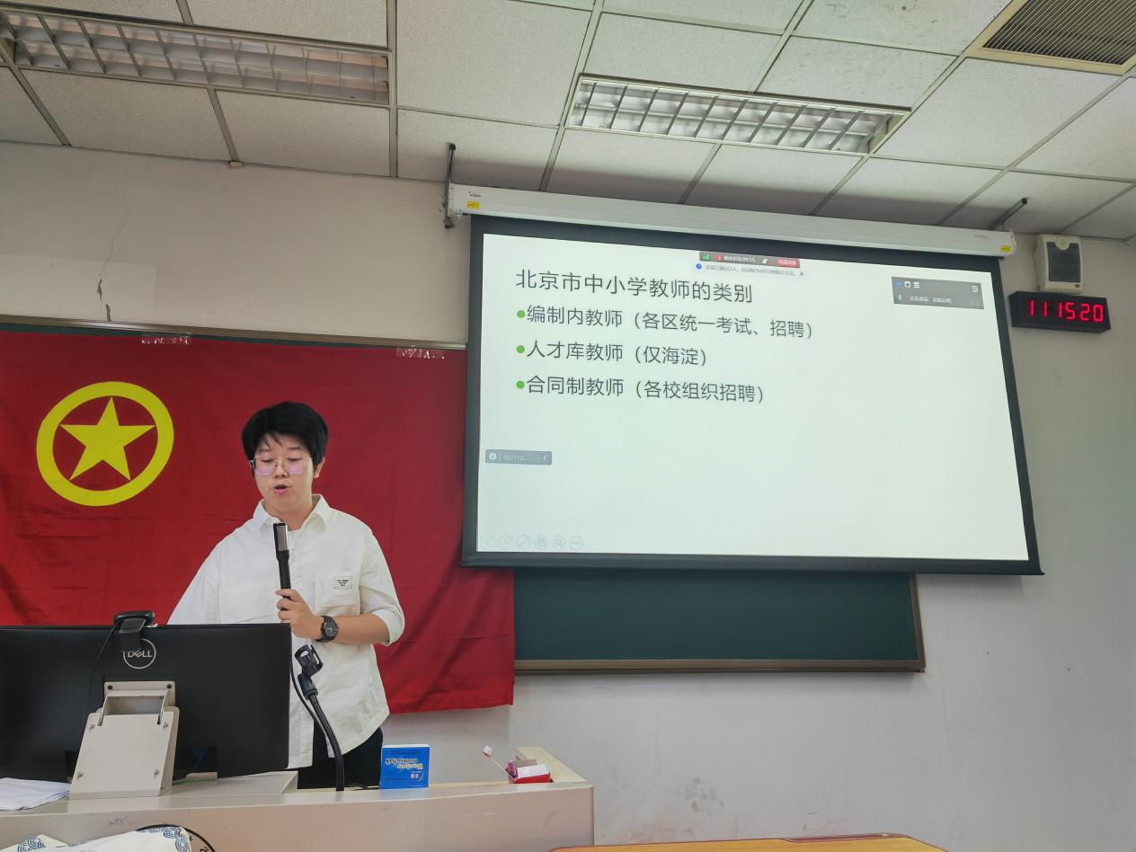 周沐和万春利分别分享了在北京和天津成功考取教师编的经验。周沐介绍了教师编的类别、教师招聘信息的获取途径、编制考试的基本内容。万春利详细讲解了教师编备考的策略,从考试内容、知识梳理、素材积累以及备考时的心态等多方面做了经验分享。