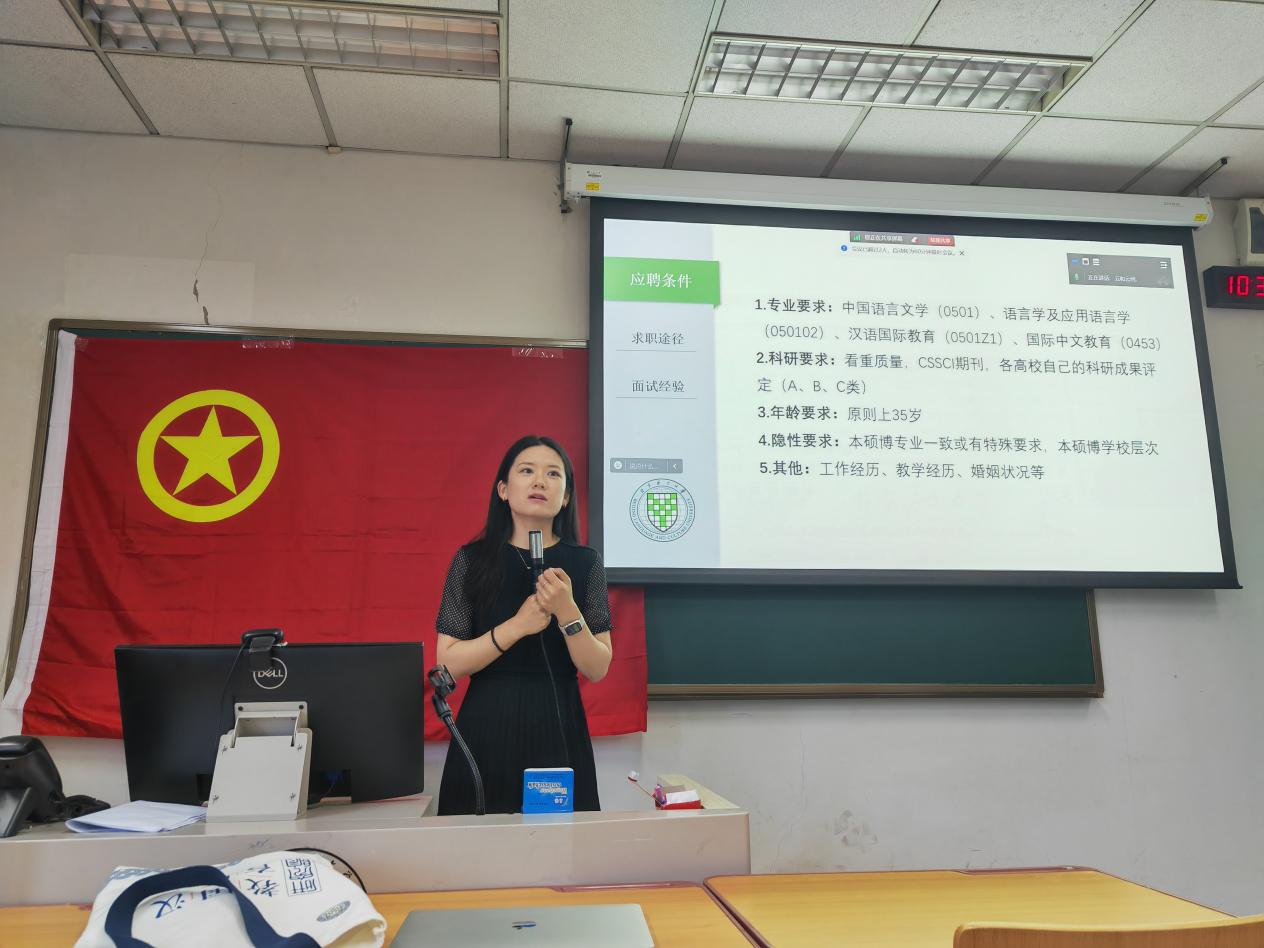 6月25日上午,国际中文教育研究院在教一312成功举办了一场别开生面的就业经验分享会。本次活动邀请了我院2024届硕士毕业生黄国敬、周沐、万春利、洪泠伊和博士毕业生卢星星,与同学们分享求职过程中的宝贵经验和心得体会。
