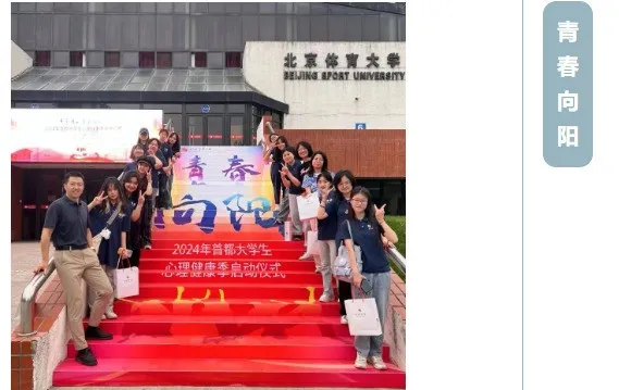 我校积极参与首都高校“5·25”心理健康季活动与海淀区“5·25”心理健康月活动。4月26日,我校师生代表参加在北京体育大学举行的“五育润心 青春向阳”2024年首都大学生心理健康季启动仪式。宣传开展大类活动,并取得优秀成绩。