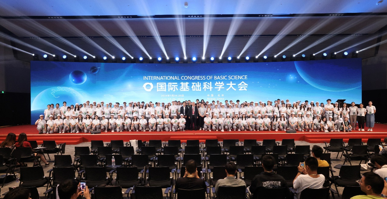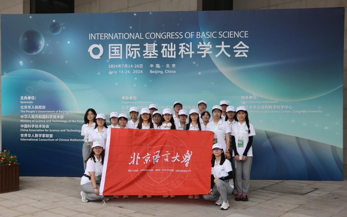(服务全程大会的北京语言大学“2024国际基础科学大会”志愿者合影)