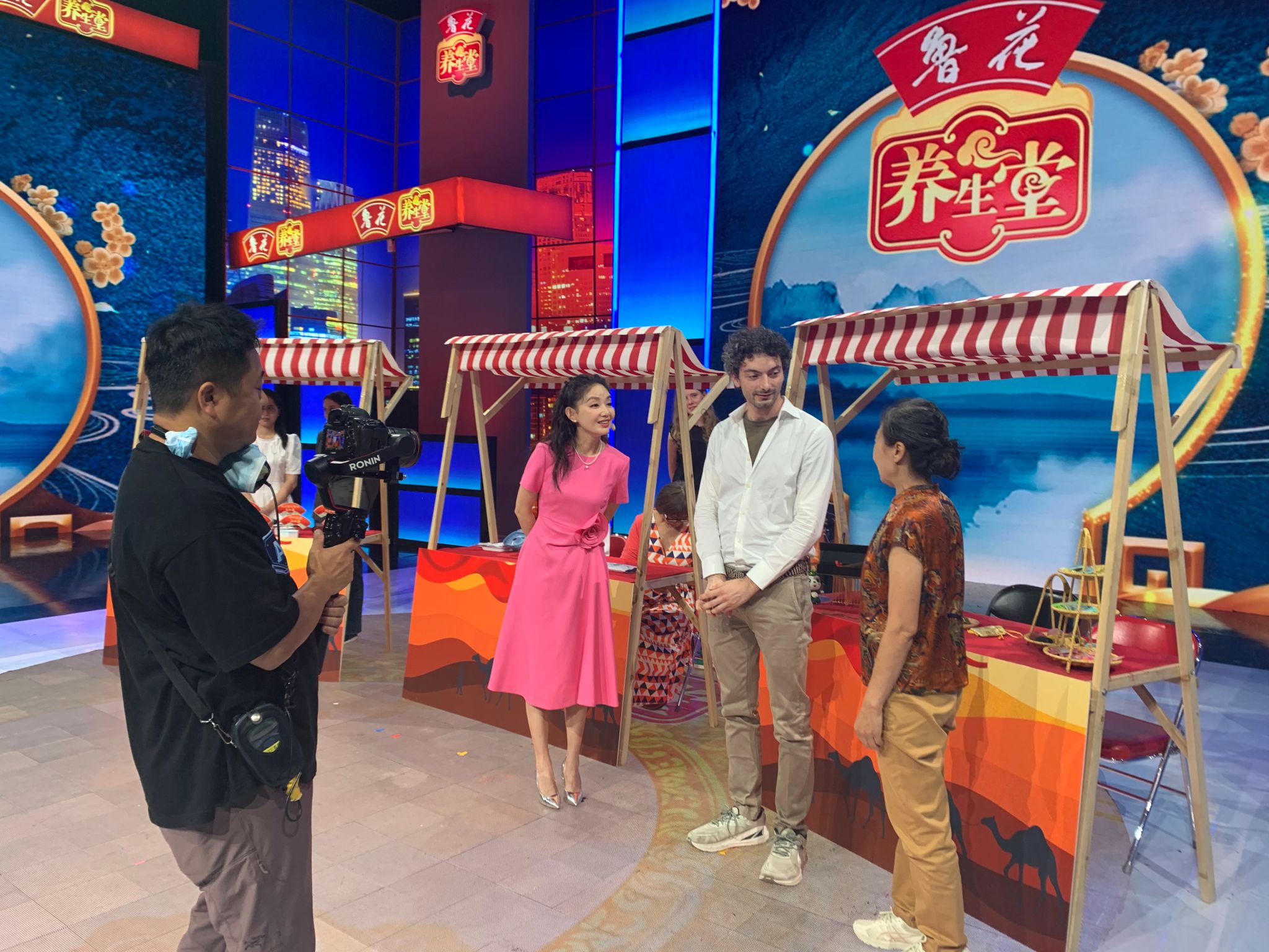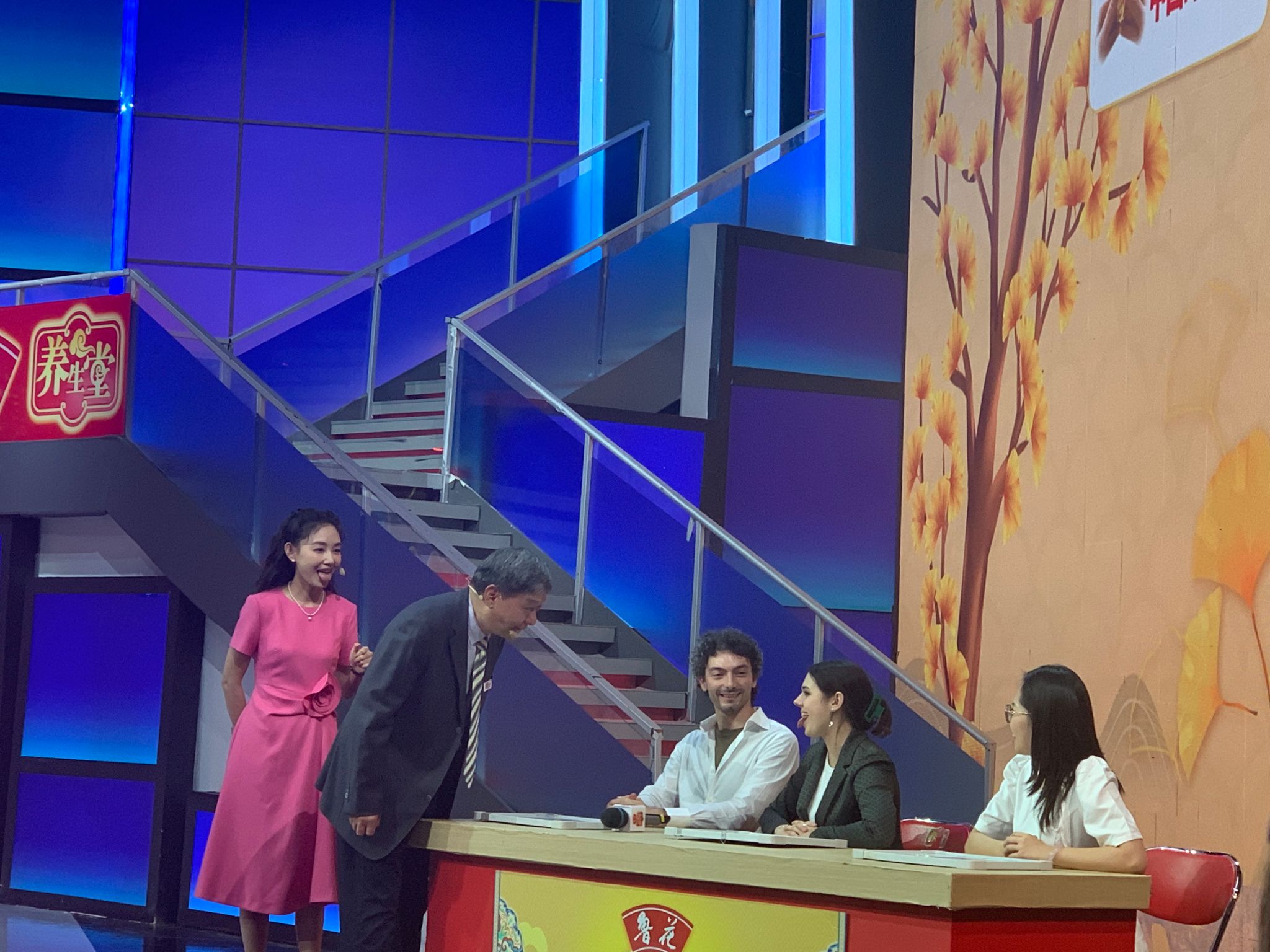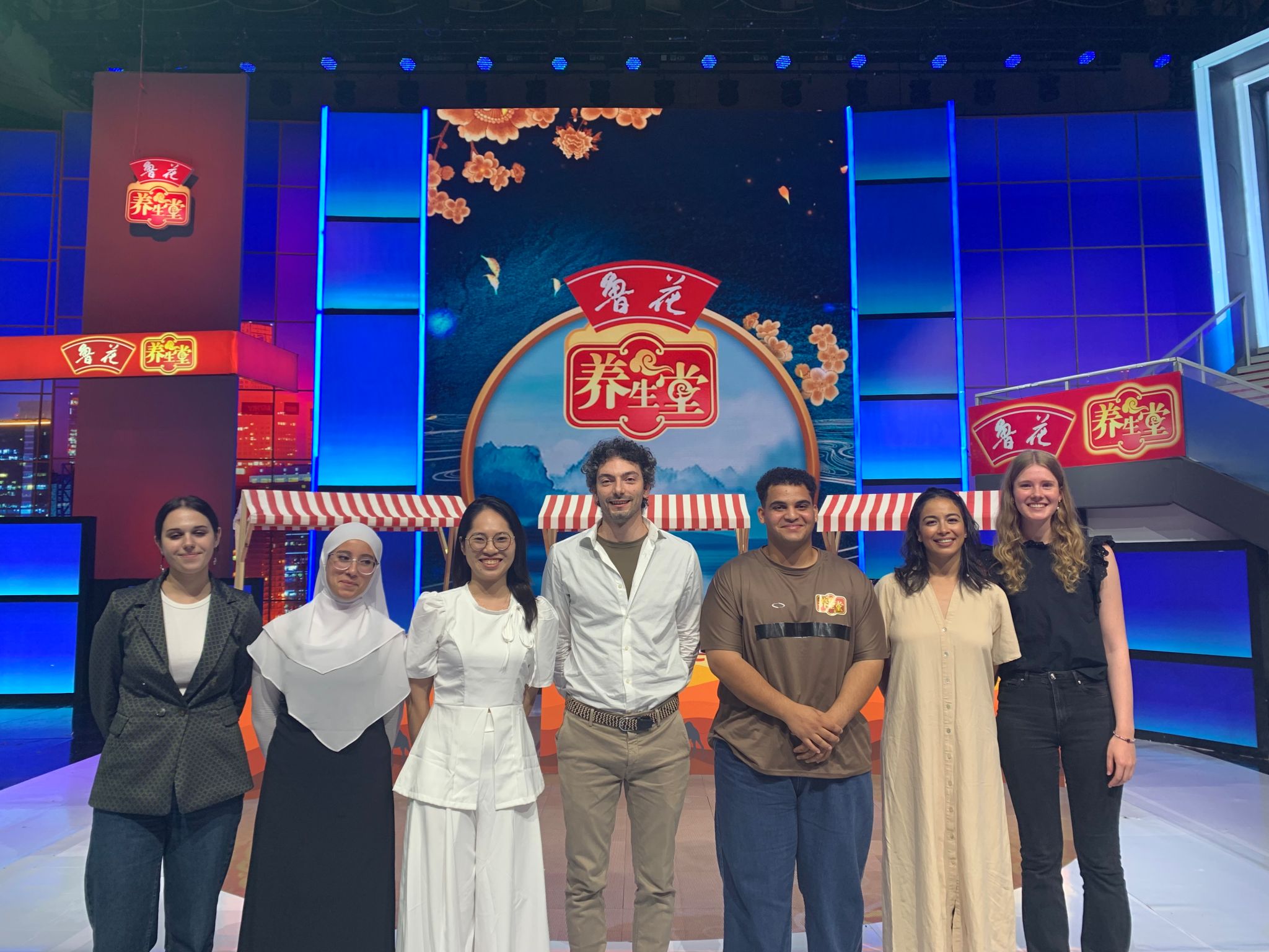9月11日,应北京电视台邀请,应用中文学院刘小贝(法国)、哈桑(埃及)、瑞卡多(意大利)、吴欣奕(越南)、捷妮(突尼斯)、奥利亚(俄罗斯)、严安可(德国)等7位同学参加了《养生堂》节目的录制,朱文文副院长带队。
