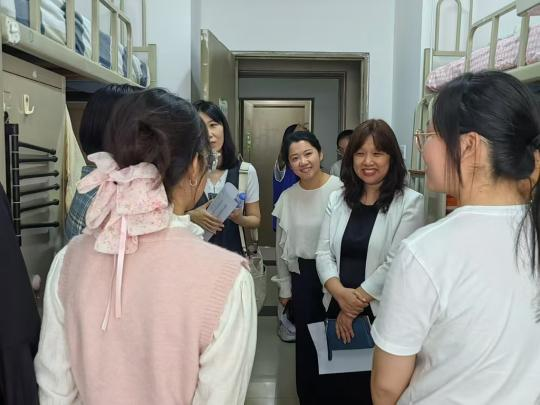 迎新工作结束后,商学院领导、新生班主任、辅导员带着满满关爱与期许,集体走访了新生宿舍。老师与同学们亲切交流,强调了宿舍卫生、用电安全,检查了空调等各类设施的运行状况,并从住宿饮食、生活习惯、社团活动等多方面了解新生情况。在走访过程中,老师们耐心解答新生们关于学习、生活等方面的问题,为他们提供宝贵的建议和指导。同时,老师也鼓励同学们积极参与班级建设、学院活动,尽快适应大学生活。新生们纷纷表示会在未来的日子里努力拼搏,为自己的梦想而奋斗。