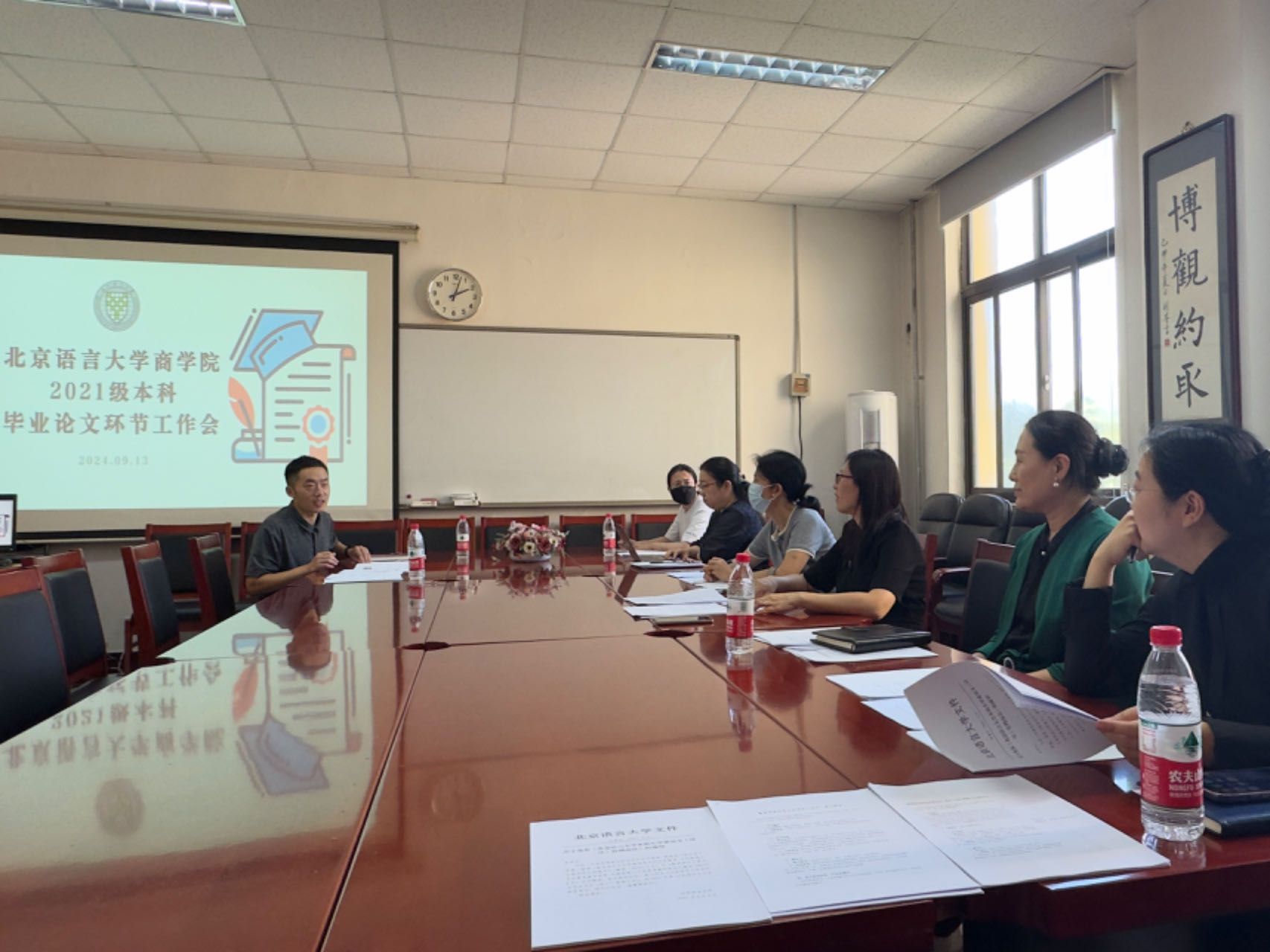 为推动学院本科教学质量内涵式发展,进一步规范本科毕业论文过程管理,持续提升学士学位论文质量,确保2021级本科毕业论文各环节的顺利开展,商学院于9月13日在主南418召开2021级本科毕业论文环节工作会。学校教学督导组成员勾东宁、商学院各本科专业负责人与本科教务秘书出席会议。会议由商学院副院长祁大伟主持。