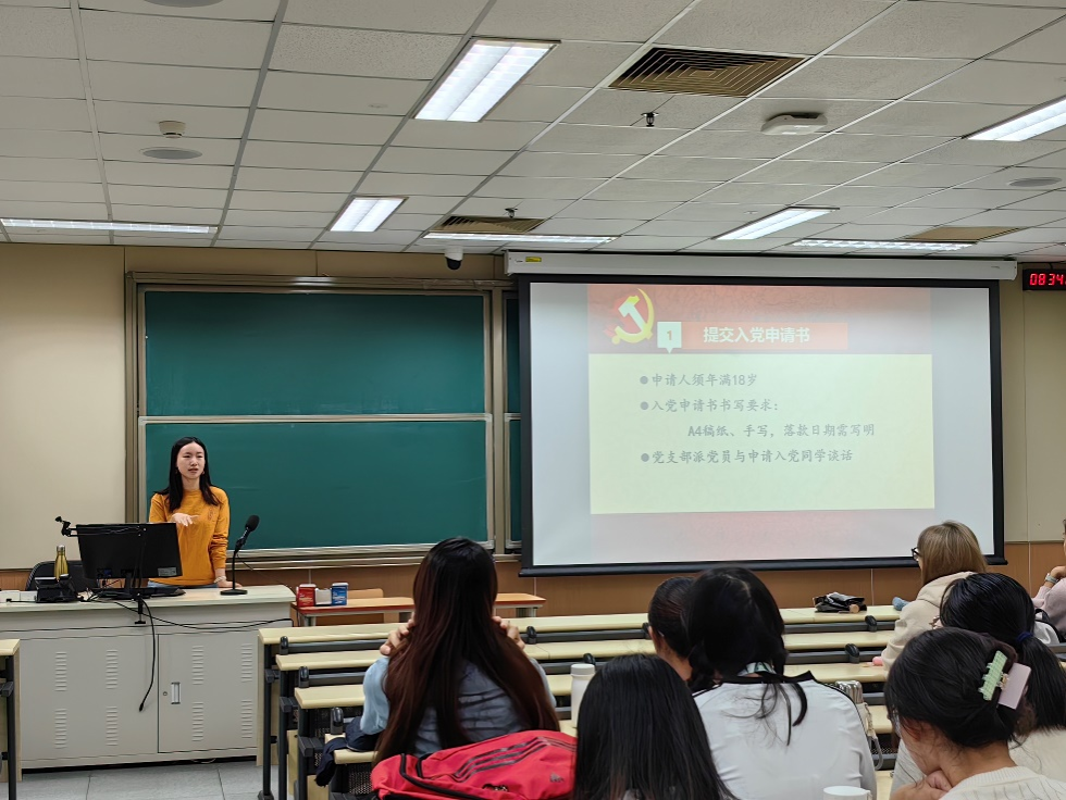 随后,李老师系统地讲解了入党申请的详细流程,从提交入党申请书到参加党校培训、确定为入党积极分子、发展对象直至最终成为预备党员、正式党员的各个阶段,都进行了细致的阐述。她还特别强调了入党过程中需要满足的具体条件,包括思想政治表现、学业成绩、群众基础等方面,为同学们绘制了一幅清晰的入党路线图。