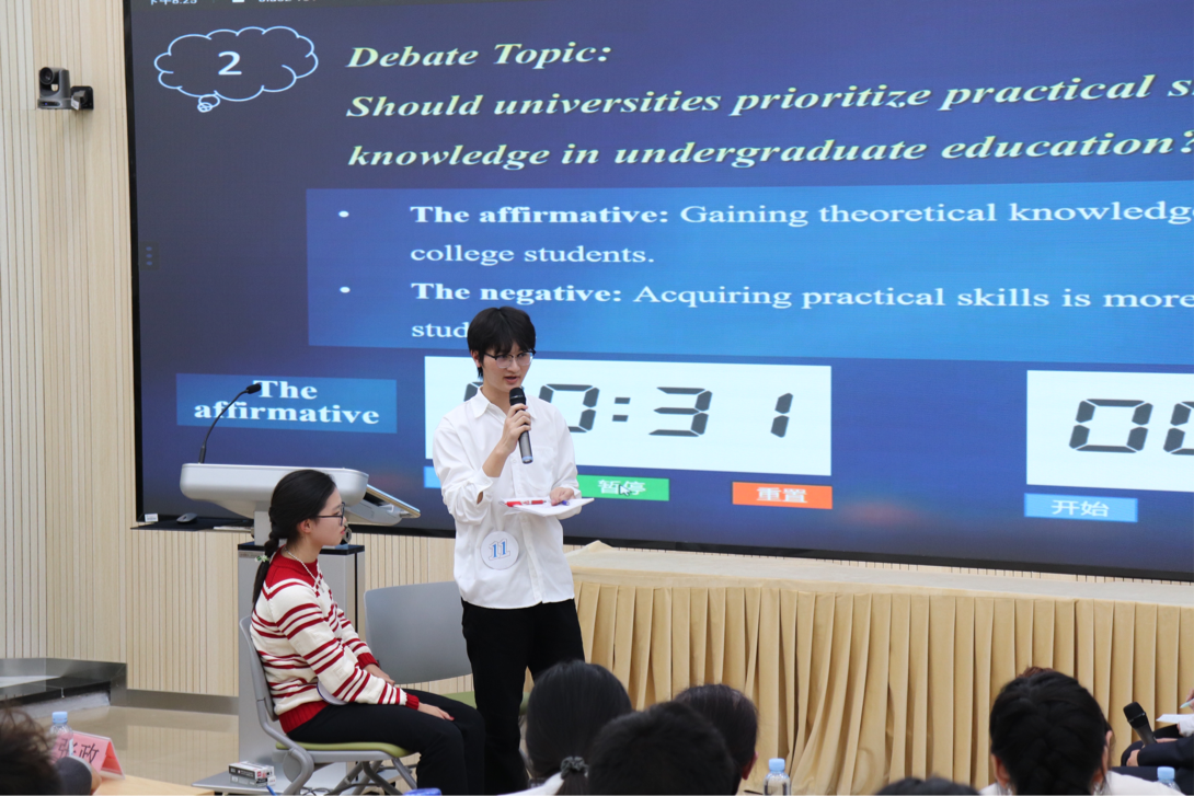 凭借着丰富的英语知识储备与高超的口语水平,十二位选手给观众们带来了一场精彩绝伦的英语口语盛宴。每一个参赛者都展现出了非凡的风采,在主题“The Challenges and Opportunities of Becoming an Adult”下叙说自身的成长故事与对未来生活的期望;在即兴演讲环节中,选手们才思敏捷,短短时间内,就能将几个关键词串联成一篇精简但不失深度的故事;在小组即兴辩论环节中,选手们两两并肩作战、各抒己见,双方你来我往、观点交锋,在智慧与口才的较量中尽展深厚的思想底蕴。