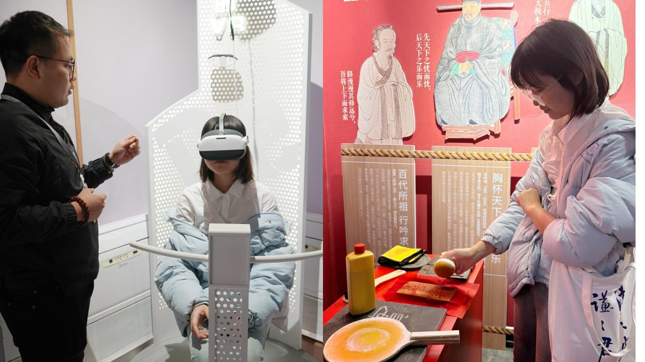 在中华优秀文化体验区,同学们进一步了解各地优秀传统文化。陕西厅以三秦大地的悠久历史、灿烂文化和壮美山河为主题,从古老的兵马俑到雄伟的华山,从丰富的民俗文化到现代的科技创新,展示陕西的多元魅力,让同学们赞叹不已。湖南厅主要展示了潇湘大地的红色基因和革命精神,从韶山冲的伟人故里到橘子洲头的豪迈诗篇,从革命斗争的艰苦岁月到现代化建设的蓬勃发展,湖南的故事深深触动了每一位同学的心弦。