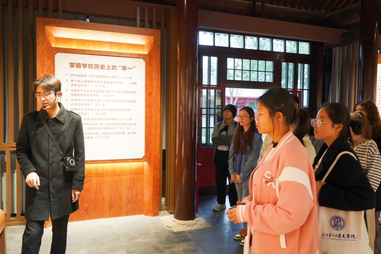 蒙藏学校旧址迄今已有600余年历史,这座蕴含深厚历史底蕴的建筑见证了我国各民族携手并进、共同发展的光辉历程,同时也是一座承载中国共产党早期光荣革命历史的重要红色遗存,属于中国共产党成立初期开展民族工作的主要阵地。踏入旧址,庄严肃穆的氛围立刻让同学们感受到了历史的厚重,在讲解员的带领下,大家仿佛穿越时空,重温了那段充满奋斗与激情的岁月。