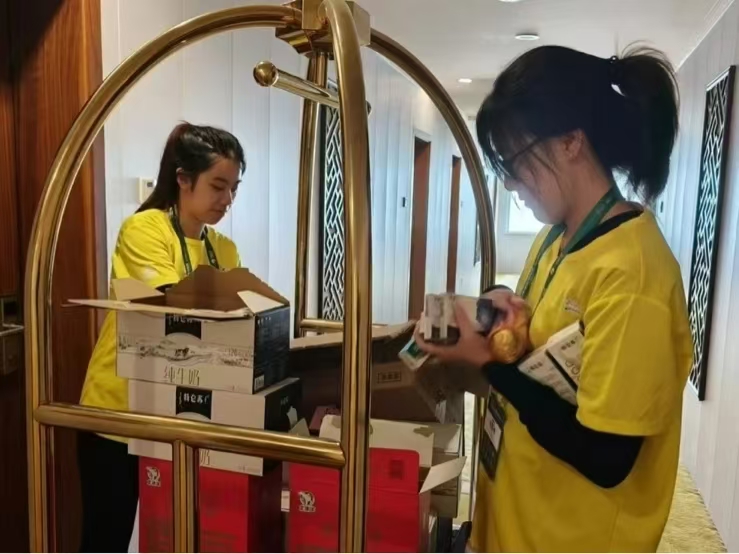 10月24日至26日,我校咨询处志愿者到岗开始进行物品发放工作。从入口的热烈欢迎、微笑服务,到耐心指引、提醒选手根据号码领取物资,再到为选手发放参赛包和参赛服,我校志愿者的身影遍布咨询处的各个角落。整个分发过程中,志愿者们保持着高度的责任心和耐心,细心核对每位领取者的信息,确保物资发放的准确无误。志愿者们充分展现语言优势,为外宾提供翻译服务,保障活动顺利开展。
