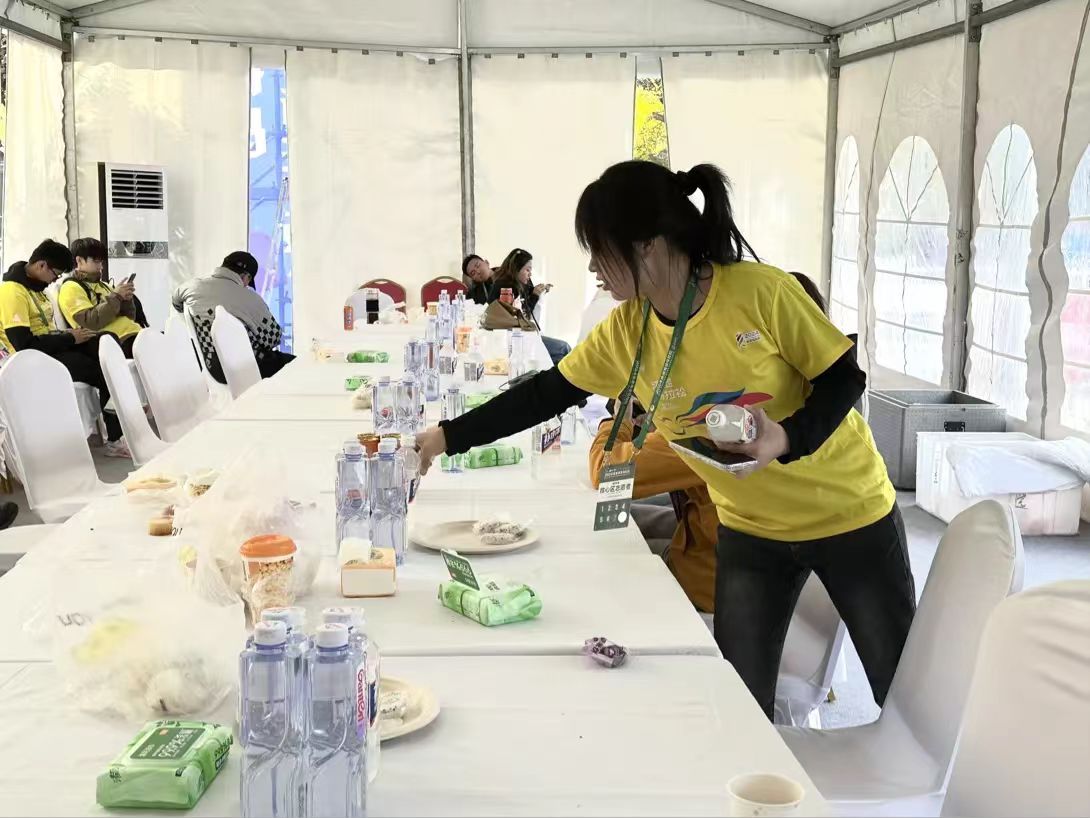 比赛当天,北语志愿者们身着统一的志愿服装各司其职。在VIP区域,他们坚守岗位,以专业的素养和细致的服务,接待并引导每一位嘉宾,确保现场井然有序,得到了嘉宾们的一致赞赏。负责赛道收容车的志愿者团队清晨便开始待命,耐心且热情地协助选手解决突发问题,确保了赛事的顺利进行。