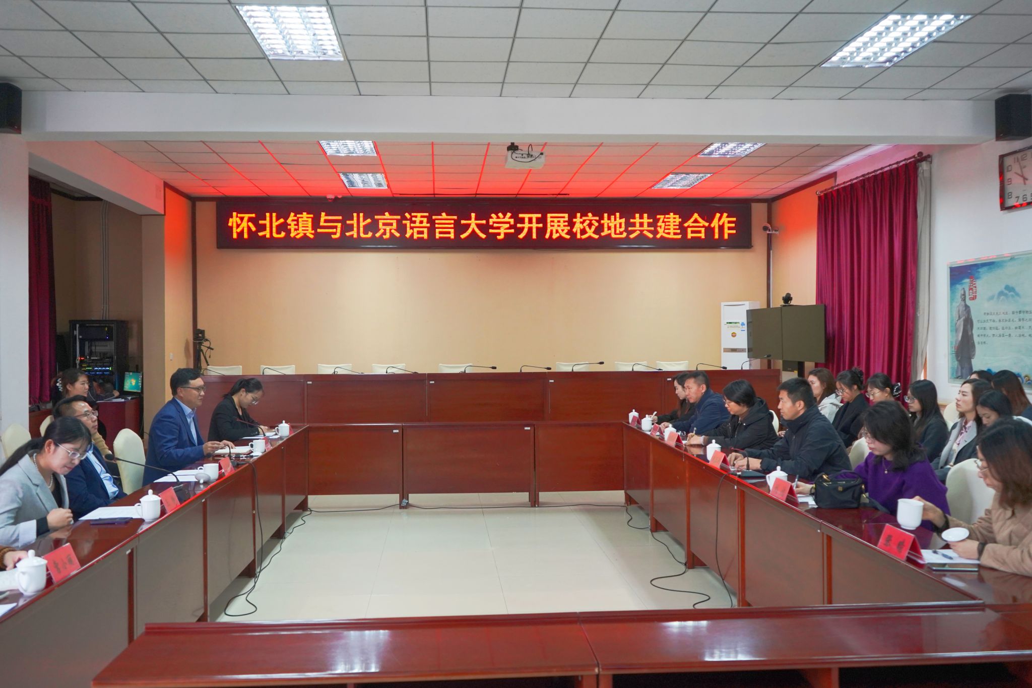 双方首先进行了座谈交流,座谈会由我校校友、怀北镇党委宣传委员王静主持。怀北镇党委副书记、镇长王之帆,怀北镇党委副书记张永春对我校一行人表示热烈欢迎,详细介绍了怀北镇近年来的发展情况与特色产业,对学校培养并输送优秀校友支持怀北镇建设表示感谢,希望双方能够加强校地合作,共同搭建学生实践平台,促进学生成长,服务乡村振兴。学工部部长武玉洲简要介绍了北语的有关情况。他表示,今年9月召开的全国教育大会提出,中国特色社会主义教育强国,应当具有强大的思政引领力。高校要把思政课小课堂与社会大课堂结合起来,让思政课与社会实践充分互动、与时代脉搏同频共振,把大思政课上到京郊大地上。希望通过此次共建,能够组织更多中外学生来到怀北镇,感受乡村振兴给京郊农村带来的巨大变化,立体地感受中国发展成就,在实践中了解国情民情,坚定理想信念。同时也希望引导更多的毕业生毕业后能够投身乡村振兴,在基层建功立业。