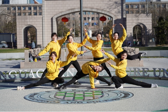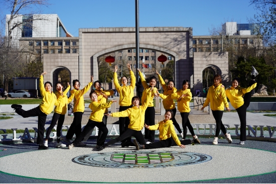 在上大学之前,我从来没有想过我会成为艺术体操队的队员,甚至感觉自己经历了中学的隔断几乎和体育运动不会再有什么联系了。但是非常幸运地获得了加入艺术体操队的资格,不仅找到了一项热爱的运动,还有机会参加大型的比赛。刚开始的时候还会觉得训练很辛苦,会很想睡午觉,但是在备赛的时候第一次听到北语独特而有力量的加油口号的瞬间就被团队的精神感染了,看到学姐们全力以赴的身影受到了深深的触动。