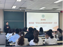 祁大伟副院长介绍本次大赛通过学生主讲课程思政案例的形式,体现教师在教学过程中思政元素和专业理论的融合。商学院坚持守正创新,鼓励教师运用本土化案例解释说明本土化经济发展,深入回答中国具体实际问题,深入挖掘中华优秀传统文化的丰富内涵和时代价值。通过选取弘扬中国特色社会主义道路自信、理论自信、制度自信、文化自信的教学案例传授理论知识,培养学生对于行业前沿和社会热点的敏感,扎根中国大地、赓续中华文脉、厚植学术根基。