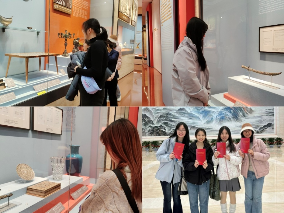 在讲解员的引导下,同学们认真参观了“友好往来,命运与共”——党和国家领导人外交活动礼品展。该展览展出了新中国成立以来,党和国家领导人在外交活动中受赠和赠送的670多件(套)代表性礼品,生动展现了以毛泽东、邓小平、江泽民、胡锦涛、习近平同志为主要代表的中国共产党人开辟并发展新中国外交事业的光辉历程与辉煌成就,特别是党的十八大以来,以习近平同志为核心的党中央全面推进中国特色大国外交,推动构建人类命运共同体的伟大实践和历史性成就。