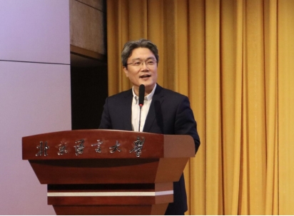 李波校友作为英语专业优秀校友代表发言。回首了自己与北语、与“英姿飞扬”的不解之缘,他诚挚感谢了每一位努力将北语英院建设得更好而孜孜不倦、不懈奋斗的师生,并衷心祝贺英语专业60岁生日快乐,祝愿每位同学都能够全身心拥抱大学生活,不留遗憾。
