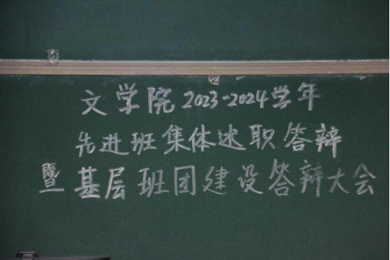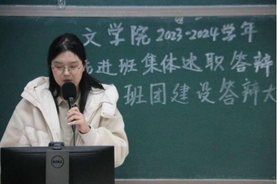 2024年11月29日18:30,文学院团委组织部组织的文学院2023—2024学年先进班级集体述职答辩暨基层班团建设答辩大会在教四101顺利举办。文学院团委书记兼本科生辅导员玄铮老师、本科生辅导员万阳卓老师、文学院学办娄茜茜老师、文学院本科生第二党支部张妍同学作为评委出席本次活动。2022、2023、2024级本科生班级参与本次答辩。
