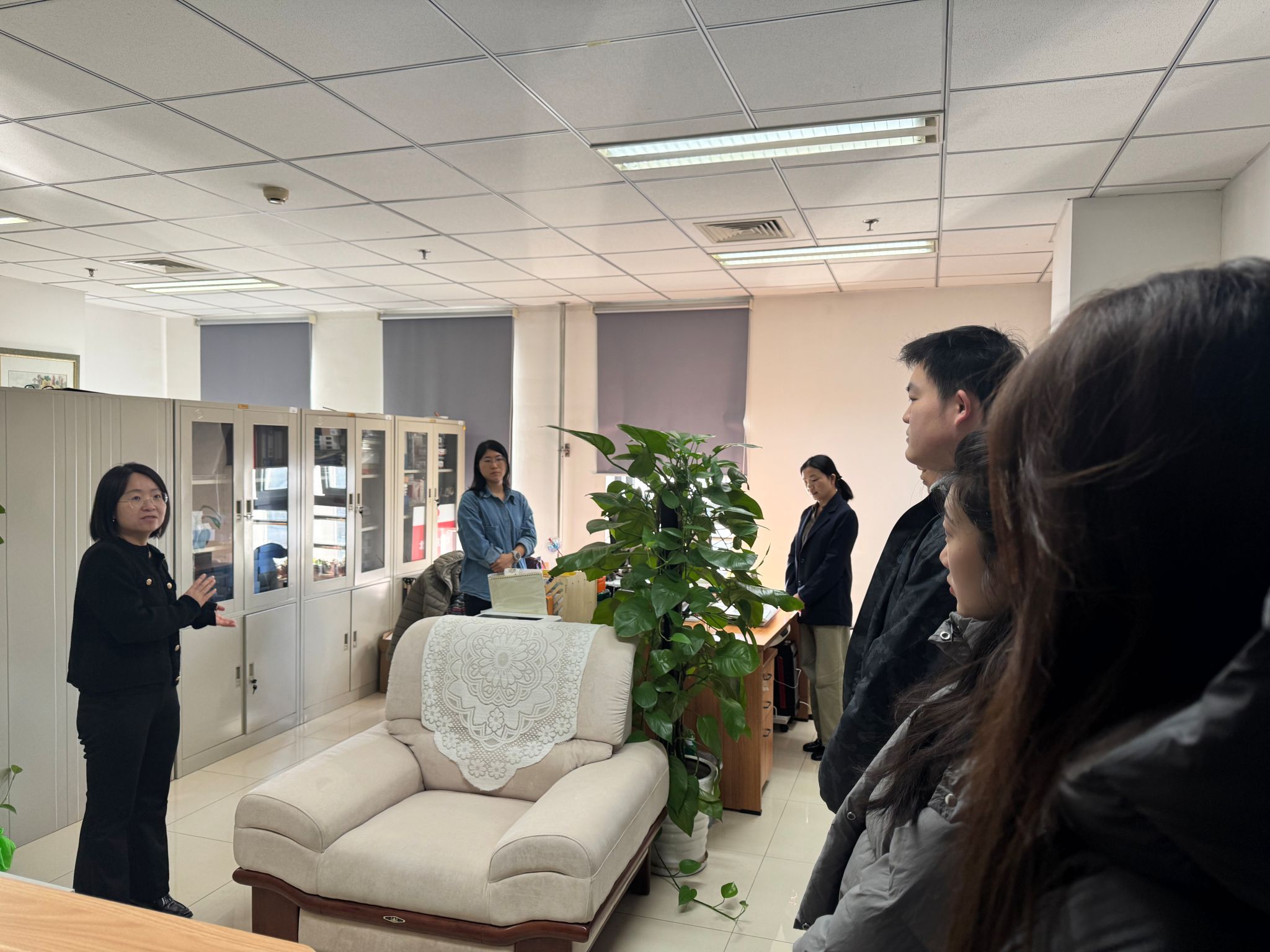 本次学校办公室开放日活动分为参观学习和座谈交流两个环节。在学校办公室老师的带领下,同学们有序地参观了学校办公室的各个科室,每到一个办公室,科室负责人都会亲自接待参观的同学,详细介绍各自科室的工作职责、运行模式以及为同学们所能提供的服务,让同学们对学校工作有了一个更加直观的了解。
