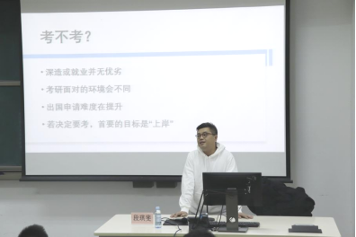 研究生管理办公室主任段琪斐对22级学生进行考研指导,详细介绍了学院各硕士点,包括经济学学硕、国际商务专硕、金融专硕和会计专硕,并对其培养方向、课程设置、学制学费等方面进行了说明,为同学们提供了实用的报考指南,帮助大家更加精准地定位深造方向。段老师勉励大家早做规划,在学业道路上潜心钻研,勇敢追梦,持续前行。
