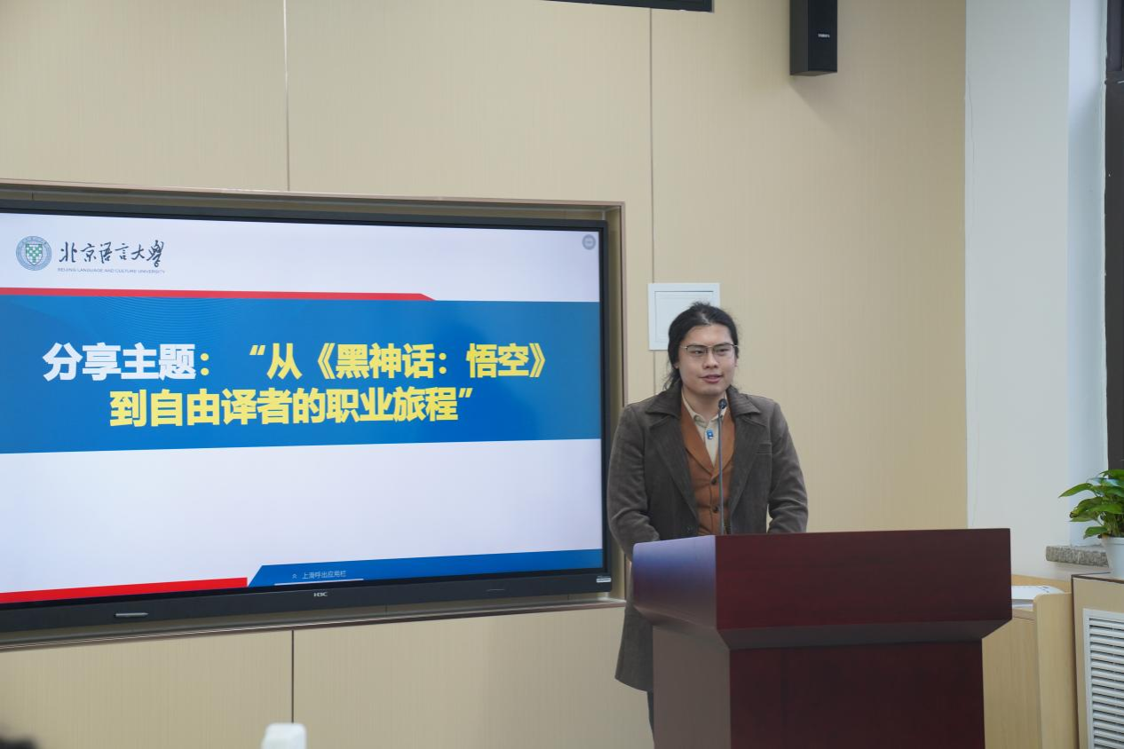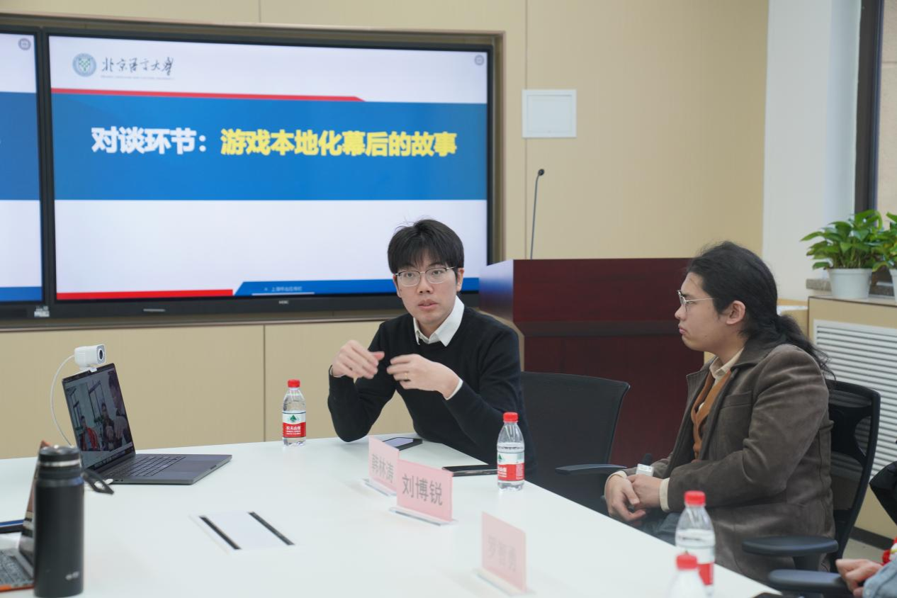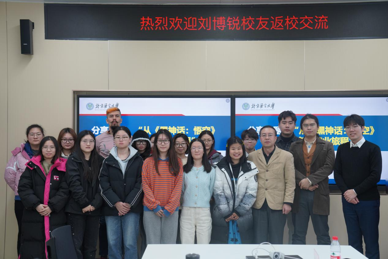12月11日,我校信息科学学院校友、《黑神话:悟空》英文版语言创意团队首席译者刘博锐重返母校北京语言大学,与师生们共同开展座谈交流活动。我校信息科学学院院长罗智勇、数字媒体技术专业教授张习文出席座谈活动并讲话,高级翻译学院副教授韩林涛担任活动“对谈嘉宾”,信息科学学院、外国语学部、高级翻译学院的学生代表共同参加活动,信息科学学院学生办公室主任王晶主持活动。