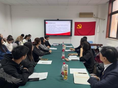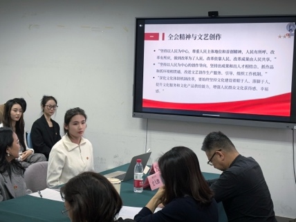 艺术学院学生党支部副书记张一凡介绍会议议程后,首先进入导学环节。博士生党员代表万俊华围绕“在新起点新征程上,担负新的艺术使命”这一主题,深入浅出地阐述了党的二十届三中全会对艺术领域的指导意义,激发了在场学生党员的学习热情。