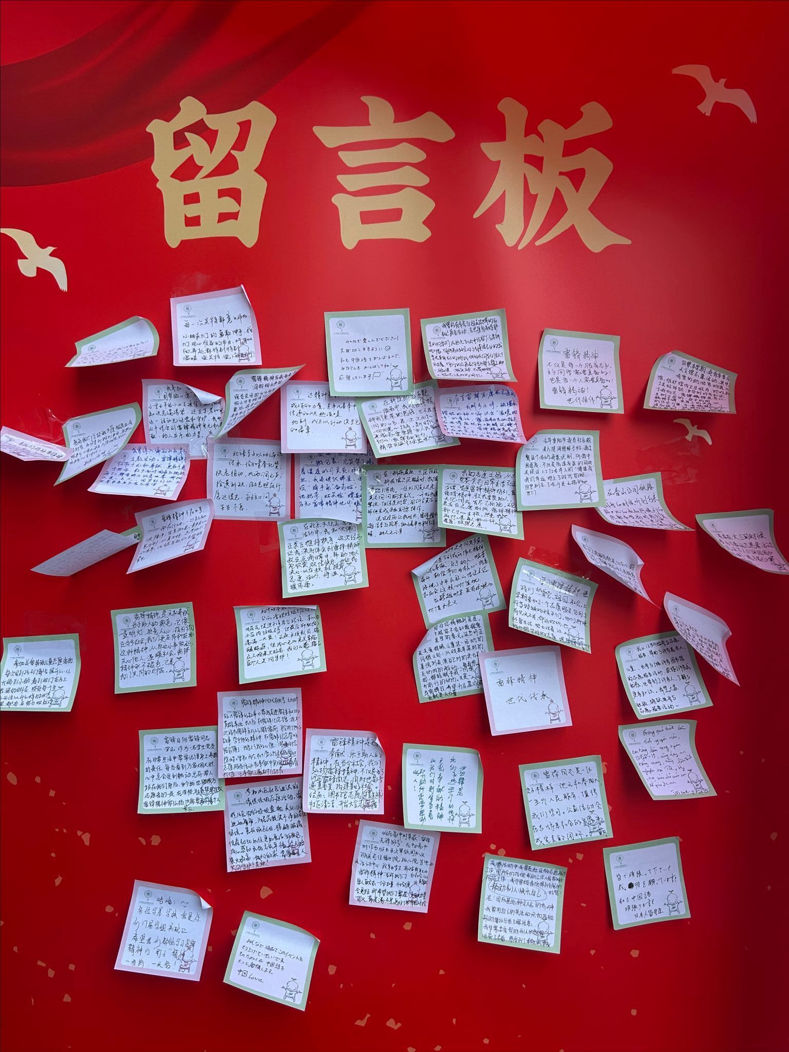 校园内设置的"打卡墙"成为活动亮点,同学们纷纷打卡拍照,让雷锋精神“照”进校园。“在香山公园做道路引导的时候,听到游客们的感谢和赞扬我感到爱传承的力量!”“我曾深入偏远山区,参与支教活动……”北语青年的志愿故事填满了火红的留言板,现场共收集志愿故事留言50余条,同学们以笔尖书写志愿日常中的温暖碎片,用行动阐述雷锋精神的当代体现,让青春奉献的话句蔚然成“锋”。