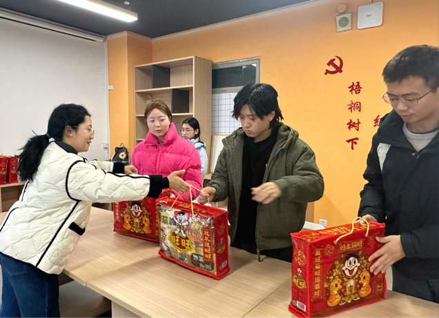 随后,老师们为同学们送上最诚挚的新春祝福,并将学院精心准备的新春礼包一一送到同学手中。同学们纷纷表达对学院的感谢之情,表示学院的关怀让他们感受到了家一般的温暖,让留校过年不再孤单。