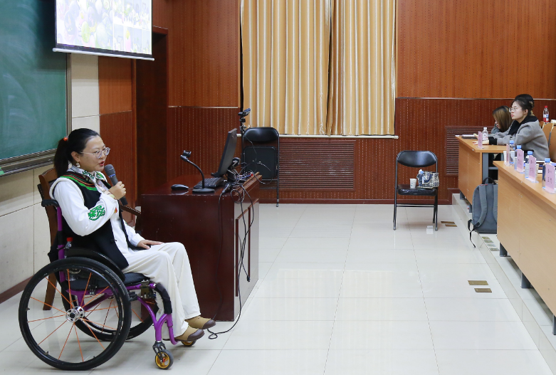 北语新闻网3月26日电(通讯员 赵湘石 摄影 马菁彦)为引导广大青年学子砥砺奋斗初心、淬炼坚强品格,3月21日,澜阁社区邀请四川残疾人励志报告团刘敏、唐建、李晓艳老师做客澜阁大讲堂,分享他们的青春励志故事。四川省残疾人服务中心副主任陈敏,四川省驻京办团委书记刘明川,教师教育学院党委书记王孝强、副书记李晓波,心理与认知科学学院党委书记王旭和150余名学生参加活动。讲座由党委学工部副部长袁胤婷主持。