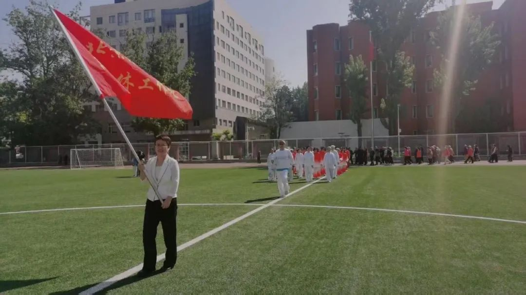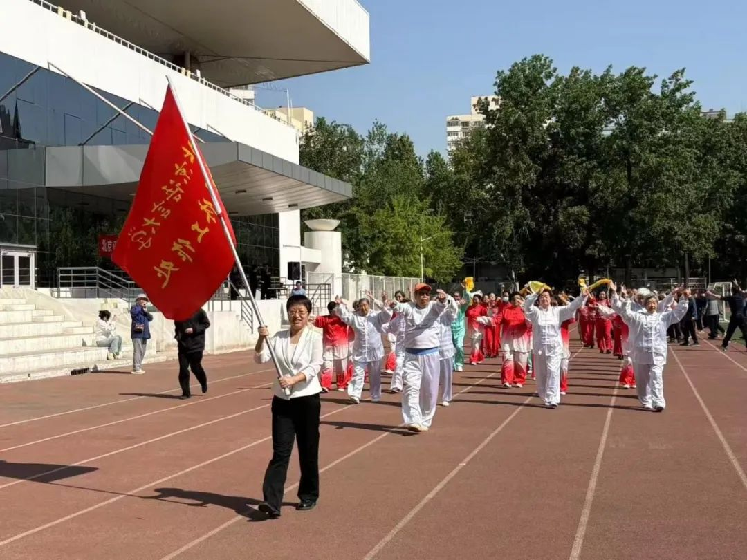 随后,离退休工作处党委书记崔克娟高举红旗,带领大家绕场一周,健步而行。在喜悦热烈的音乐中,老同志们沐浴着春日暖阳,精神矍铄、步履矫健,展现了昂扬向上的银发风采。