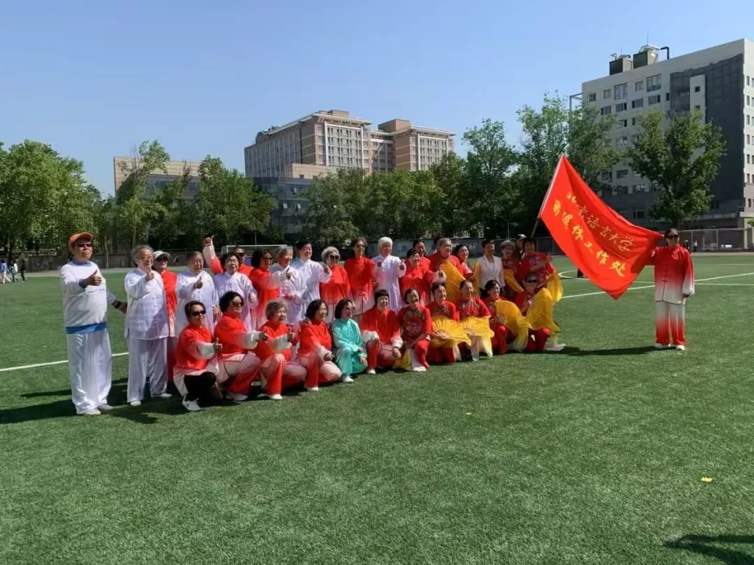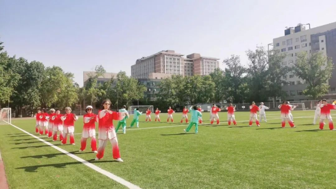 煦暖春阳洒满广阔绿茵场,映着灿烂春光,离退休太极队以拳会友,为大家带来24式、42式、16式、吴式和八法五步太极组合表演。老同志们精神饱满、意气风发,一招一式刚柔并济,生动诠释了中华太极文化之美,生动的气韵、精准的招术赢得大家的热烈掌声。