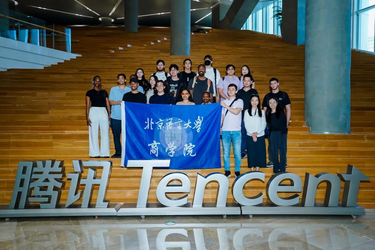 北语新闻网5月16日电(通讯员 张雨婷 摄影 张雨婷)5月14日下午,以“教育发展与变革:智能时代”为主题的2025世界数字教育大会开幕。为响应关于培养国际化数字人才的倡议,贯彻学校上一轮巡察工作关于加强科技赋能教学、深化产教融合的指导意见,商学院副院长祁大伟、国际学生班主任张雨婷带领22名国际本科生、研究生及交换生赴腾讯北京总部,开展“走进AI大模型——腾讯混元趣味课堂”实践活动。通过系统化认知学习与沉浸式场景体验,国际学生深入了解我国人工智能领域的技术突破,直观感受科技创新对文化传承的数字化赋能,为探索智能教育新模式、培养适应全球商业智能化转型的跨文化人才提供实践路径。