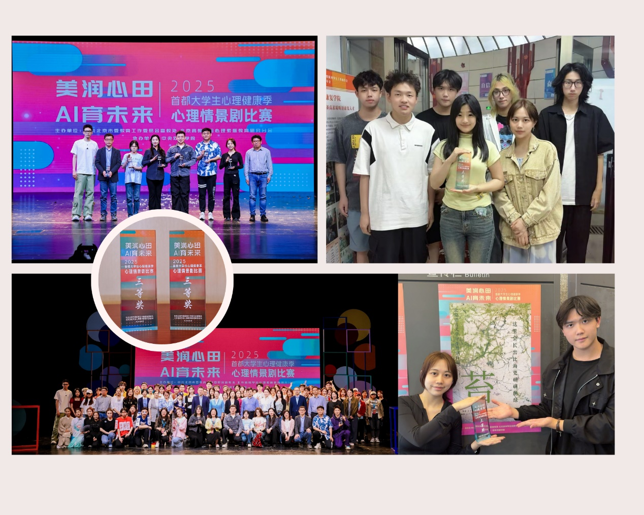 北语新闻网5月28日电(通讯员 王颖 刘梦曦 摄影 周星阳)5月24日,“美润心田 AI育未来”首都大学生心理健康季心理情景剧比赛在中央戏剧学院举行,我校选送的优秀学生原创心理情景剧作品《苔》在三十九所参赛高校的剧目中脱颖而出荣获三等奖。本次比赛由中共北京市委教育工作委员会宣教处、北京高教学会心理素质教育研究分会主办,是深入贯彻全国及全市教育大会精神,落实《教育强国建设规划纲要(2024—2035年)》关于普及心理健康教育的相关工作部署,推动五育融合促进心理健康的理念转化为实际行动的一项赛事。
