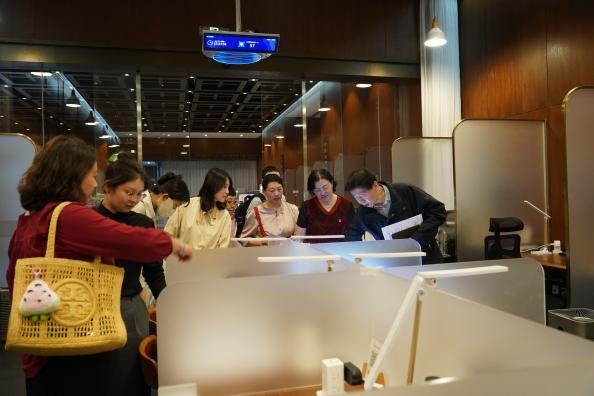 在中国历史研究院图书档案馆馆长、第六党支部袁立泽书记的介绍和带领下,党员们首先参观了研究院图书档案馆、数字化综合阅览区等特色阅览空间,实地考察了智能化服务设备。据袁书记介绍,历史院图书档案馆近年来聚焦中国特色历史学专业馆藏建设,加速推进数字化转型,在智慧图书馆建设领域成效显著,其先进的管理模式与技术应用为北语图书馆党支部成员提供了图书馆发展的新思路。