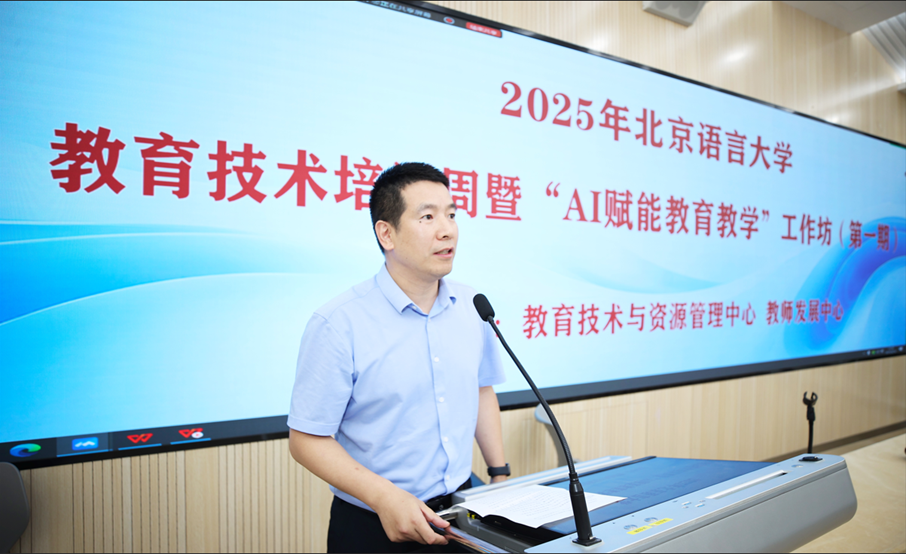 北语新闻网6月18日电(通讯员 侯兆柠 摄影 魏达)为进一步提升我校师生数字素养,推进学校教育数字化关键行动落实,6月16日,2025年北京语言大学教育技术培训周拉开帷幕,由教育技术与资源管理中心和教师发展中心共同举办的“AI赋能教育教学工作坊”(第一期)开班仪式及首场讲座举行。