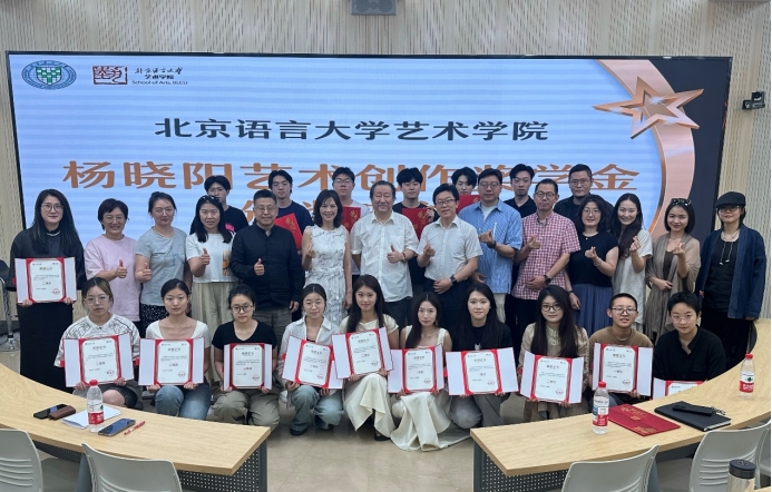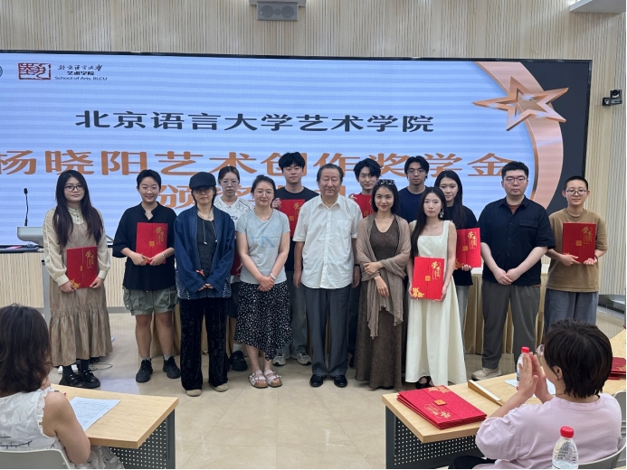 北语新闻网6月25日电(通讯员 咸俞灵 摄影 潘莉鹃)6月20日,艺术学院“杨晓阳艺术创作奖学金”颁奖典礼隆重举行。杨晓阳先生出席颁奖典礼,艺术学院院长陈霞、党总支副书记(主持工作)张雯强、党总支副书记史大鹏、副院长宋凯,获奖学生及其指导教师、学院师生代表40多人参加典礼。