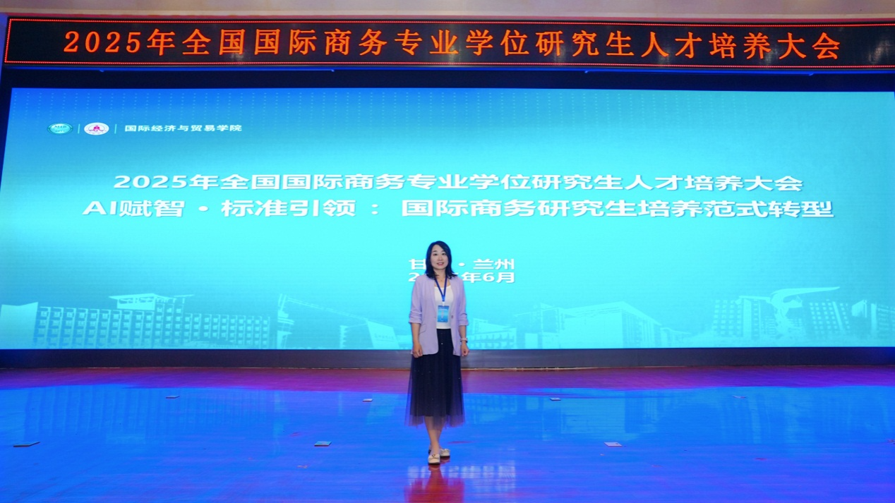 北语新闻网6月26日电(通讯员 刘智媛 摄影 刘智媛)6月14日,由全国国际商务专业学位研究生教育指导委员会(MIB教指委)主办,兰州财经大学承办的2025年全国国际商务专业学位研究生人才培养大会在兰州财经大学和平校区兴隆讲堂召开。本次会议以“AI赋智•标准引领:国际商务研究生培养范式转型”为主题,旨在探讨在人工智能时代背景下,如何培养适应时代发展和社会需求的国际商务人才。来自国内130余所高校的280余名专家学者参加了本次大会,北京语言大学商学院国际商务专硕办公室主任刘智媛副教授参加了此次会议。