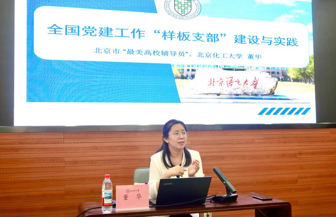 北语新闻网6月27日电(通讯员 巴丽 摄影 赵湘石)为进一步提升我校学生党建工作水平,探索基层党组织建设有效路径,6月19日,辅导员能力提升暨本科生党支部书记培训班邀请北京市“最美高校辅导员”、北京化工大学化学工程学院学工组长董华老师作“全国党建工作‘样板支部’建设与实践”专题辅导。活动由学工部副部长袁胤婷主持。