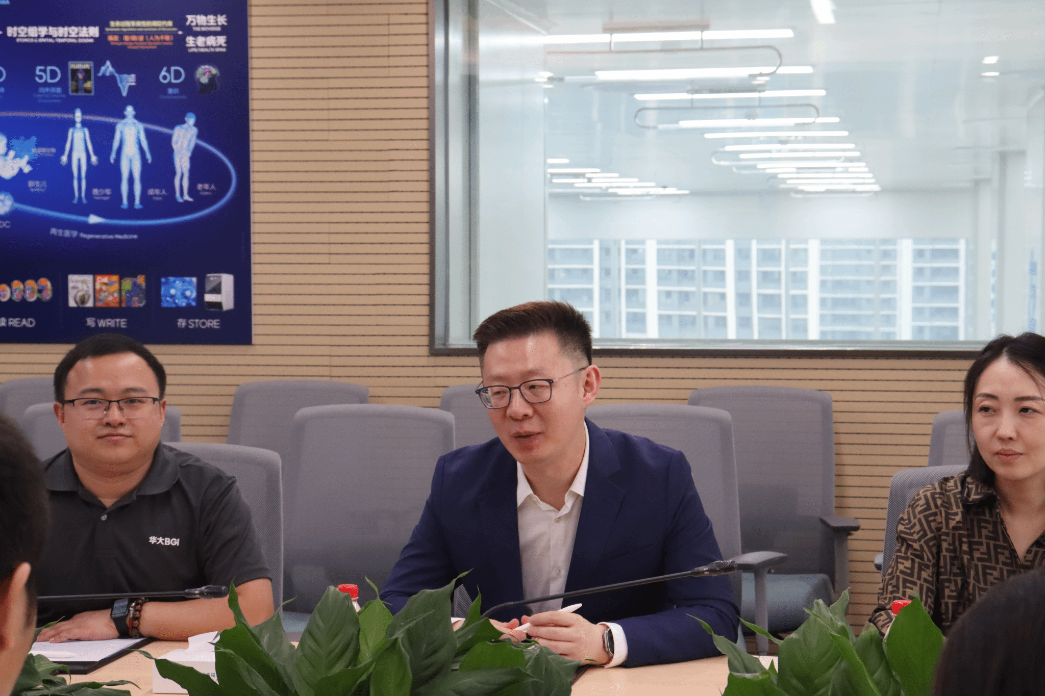 随后,我校一行人来到华大北京创新中心,中心高级助理指挥官单双权带领大家参观了中心展厅,介绍了华大基因发展历史,重点介绍了公司在基因测序、生物医药技术等领域取得的重大科研突破。