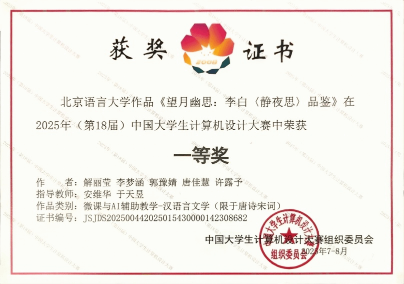 作为大赛主要发起单位和主办单位之一,我校一直以来深度参与4C赛事的各项活动。本届大赛组委会主任由我校校长段鹏教授担任,秘书长由我校信息科学学院副院长李吉梅教授担任,卢湘鸿教授既是大赛的主要创始人之一,也是本届大赛的顾问。此外,赵慧周、徐娟、安维华等老师作为核心成员参与到大赛的各项组织和评审工作中。本届大赛济南决赛区,北京语言大学作为承办单位之一,联合山东大学和泰山学院,成功承办了软件应用与开发类总决赛,共有450余所高校、714件作品及2800余名参赛师生参与,赛事于7月30日圆满落下帷幕。