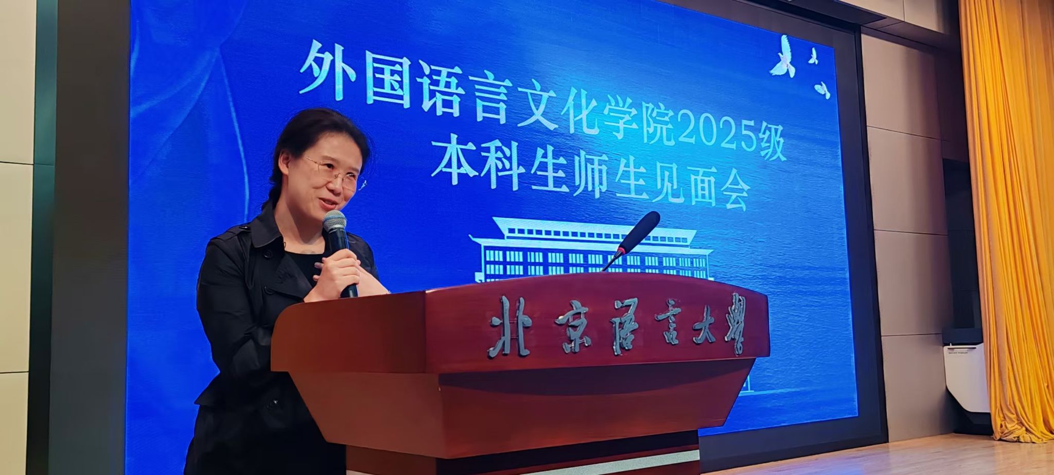 北语新闻网9月26日电(通讯员 李欣怡 吴云 摄影 肖尧 张可心)9月16日,外国语言文化学院2025级本科新生见面会于教二209召开。外国语言文化学院院长罗林、党委书记杨天乔、党委副书记冯会茹、副院长何宁、杨峻、各语种教师代表及辅导员共同出席见面会,外国语言文化学院学生工作办公室主任毛星月主持大会。