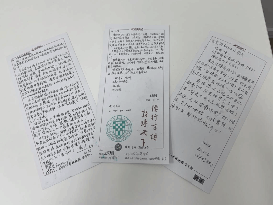校史馆联合学生处推出的“时空信箱·致未来的自己”特别活动为迎新亮点。校史馆专门设计了印有校徽、校训等元素的“北语印记卡”,正面可加盖16种校史文创印章,背面供新生书写寄给四年后自己的信件。9月11日新生报道当日,活动在逸夫体育馆展位启动,这一温馨活动迅速吸引了众多新生及家长的关注。后续活动延伸至校史馆,共回收印记卡276张。这些投入“时空信箱”的信件将由校史馆统一封存,待2029年毕业季开启。部分信件还将入选“北语人成长”电子纪念册,成为珍贵的青春档案。
