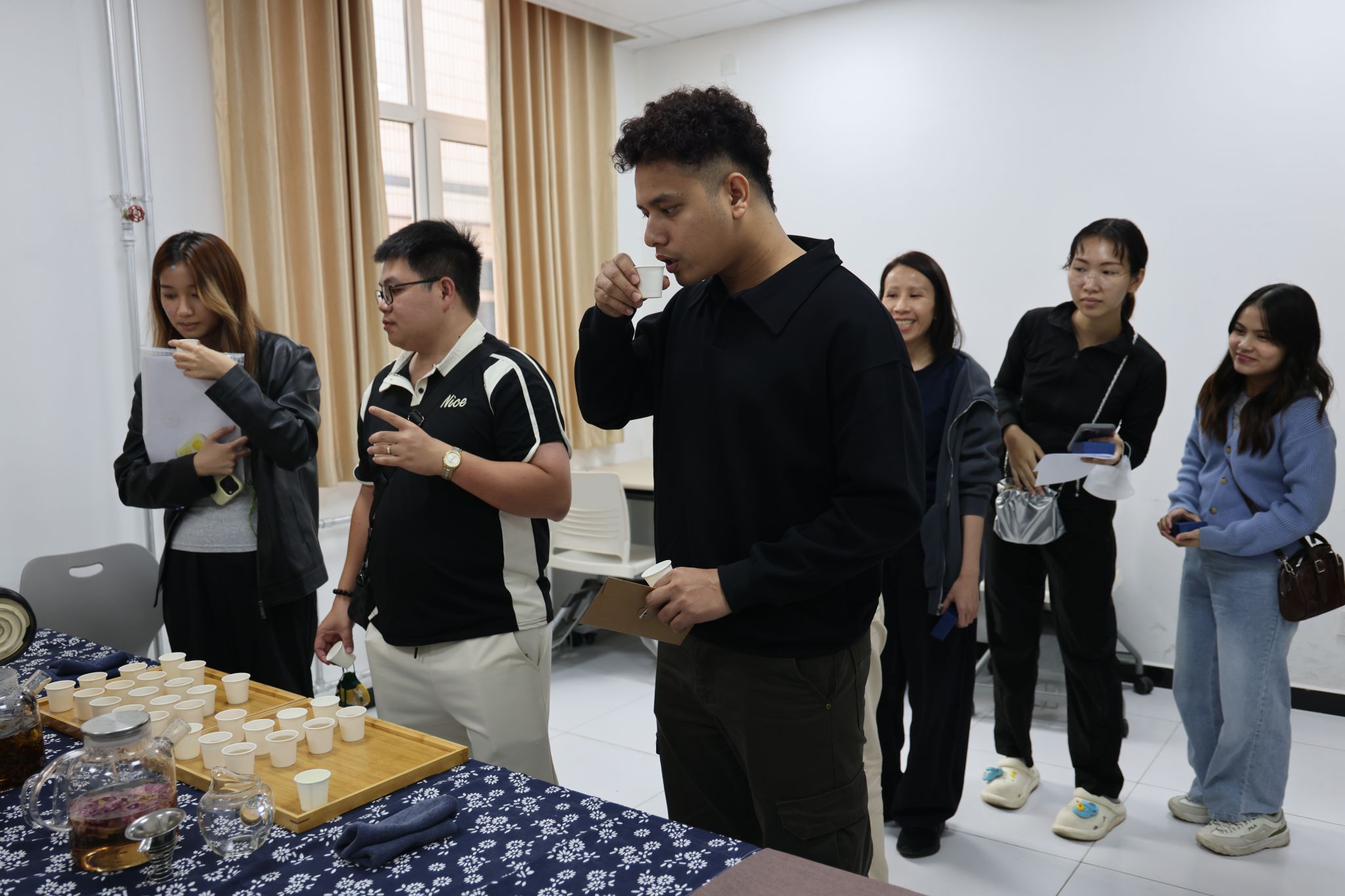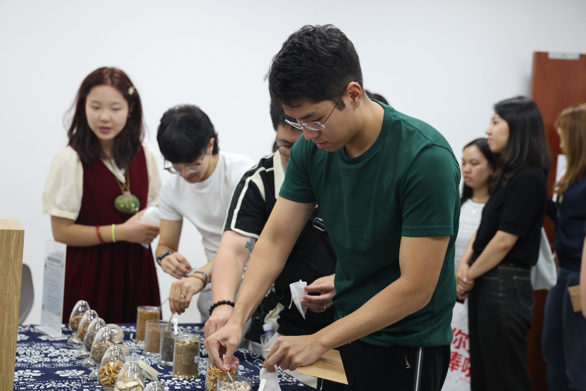 对话结束后,学院特别设置“中文+文化”体验区:茶艺课堂上,留学生们跟着老师学行茶礼、品“一带一路”茗茶;中医药香囊工坊里,大家识艾草、辨藿香,亲手缝制“福”字香囊,感受“东方生活美学”的烟火气。不少学生把香囊挂在背包上,把“中国味道”带回宿舍。