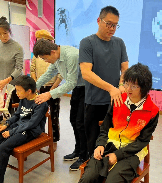 活动还设置了推拿体验区,参与者可以在这里学习传统的中式推拿手法,回去为同学和家人进行推拿,缓解疲劳。